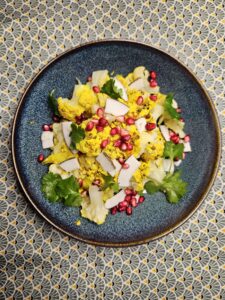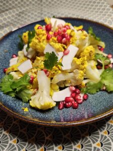 Indisk blomkålssalat Med frisk kokos, granatæble og frisk koriander Lav en god yoghurt rub til blomkålen og gnid det godt ind. Bages i xxx Serveres på en yoghurt Indisk blomkålssalat was last modified: november 1st, 2024 by Salateri Forrige indlæg Salat med ost og pære Næste indlæg Parmesandressing